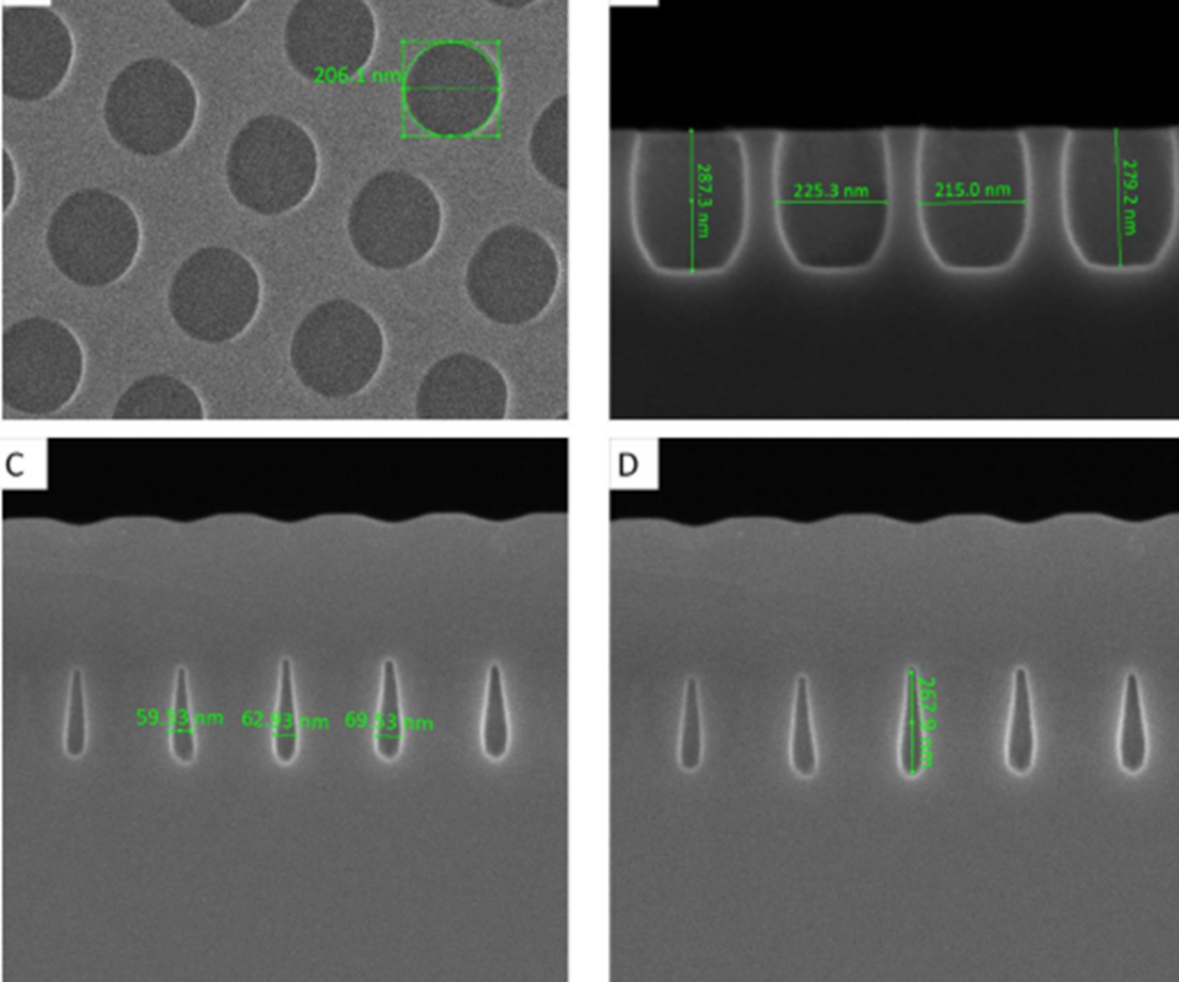 Regrowth over patterned substrate with void dimensions modeling, calibration of emitting wavelengths